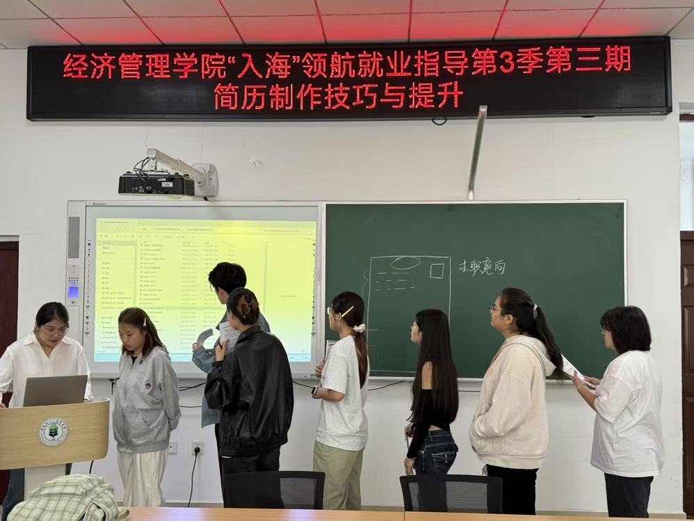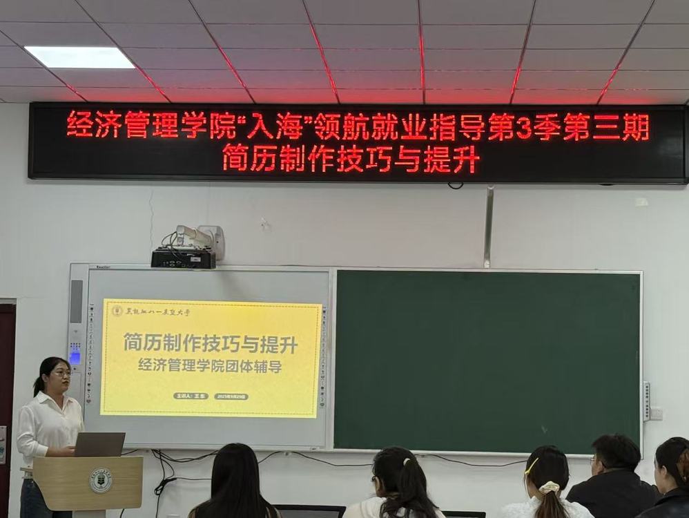 9月29日,经济管理学院在主楼附楼129室开展“入海”领航就业指导课堂第三季第三期活动。本次活动以“简历制作技巧与提升”为核心主题,特邀校招生就业处专职指导教师王东担任主讲人,面向2026届毕业生开展专题培训。
