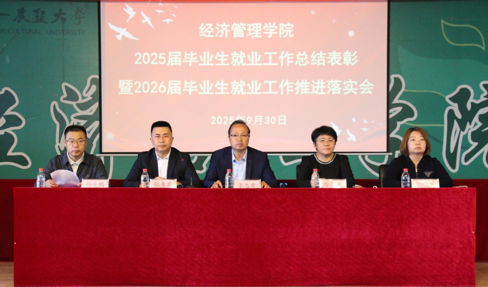 为全面总结2025届毕业生就业工作成效、凝练工作经验,表彰在就业工作中表现突出的先进个人,同时统筹部署2026届毕业生就业工作,9月30日,经济管理学院在445会议室召开2025届毕业生就业工作总结表彰暨2026届毕业生就业工作推进落实会。学院领导班子成员、全体教职工参加会议,会议由学院党委副书记张春磊主持。
