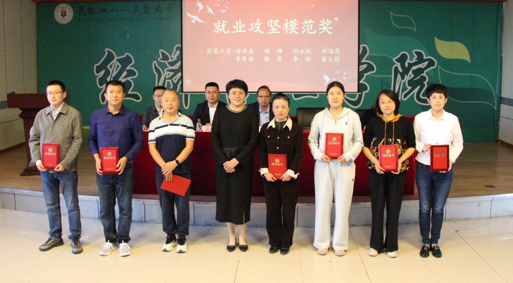 张春磊围绕2025届毕业生就业工作展开全面复盘,从就业工作的具体举措、阶段性成果和特色亮点等方面进行了梳理,为2026届就业工作的精准开展提供了清晰参考。院长徐素波宣读《经济管理学院关于表彰2025届毕业生就业工作先进个人的决定》。本次表彰聚焦就业工作中的关键环节,特设“就业护航先锋奖”“就业攻坚模范奖”“就业结对卓越奖”三个奖项,对在2025届毕业生就业工作中主动担当、成效显著的先进个人予以表彰。在热烈的掌声中,获奖教师依次上台领奖。