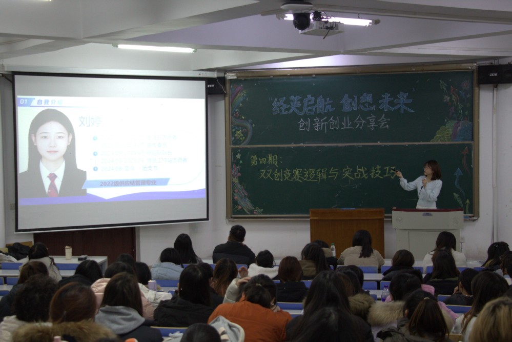为激发学生创新创业热情、传递榜样力量,帮助学生深入了解双创竞赛,11月13日晚,经济管理学院在二教214教室举办第四期“经英启航,创想未来”创新创业分享会。活动邀请优秀保研学子关新垚、刘婷担任主讲嘉宾,百余名学生参加活动,现场学习氛围浓厚。