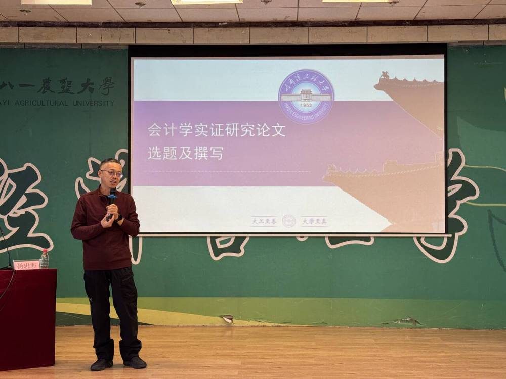 11月23日上午,经济管理学院在445报告厅举办了一场题为“会计学实证研究论文选题及撰写”的专题讲座。本次讲座特邀哈尔滨工程大学经济管理学院教授、博士生导师杨忠海主讲,旨在帮助师生深入理解实证研究方法,提升学术论文写作能力。经济管理学院院长徐素波、副院长耿晓媛及部分教师、研究生参会,现场学术氛围浓厚。