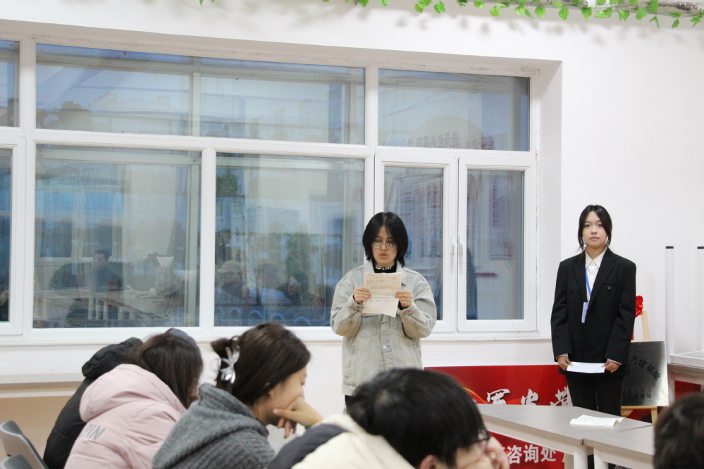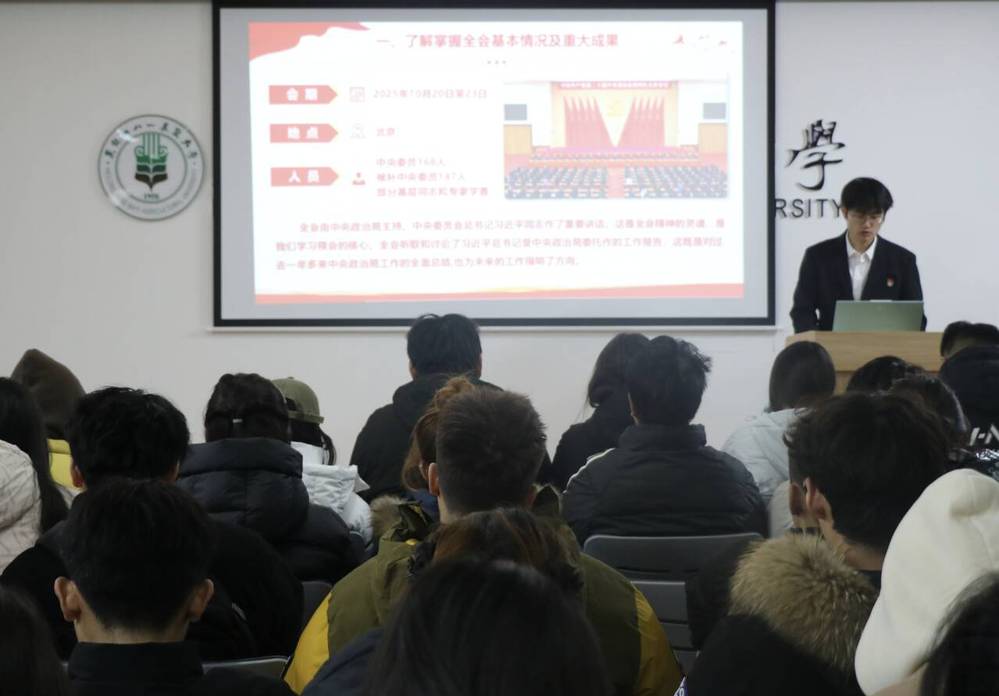 两位学生党员紧扣党的二十届四中全会精神核心,从全面回顾全会基本情况及重大成果,系统梳理“十四五”时期我国经济社会发展取得的重大成就,深刻领会党中央关于国内外形势的基本判断,精准阐释“十五五”时期经济社会发展的指导思想与战略任务等方面进行宣讲,号召同学们以此次学习为契机,将全会精神转化为实际行动,用智慧与担当书写无愧于时代的青春答卷。