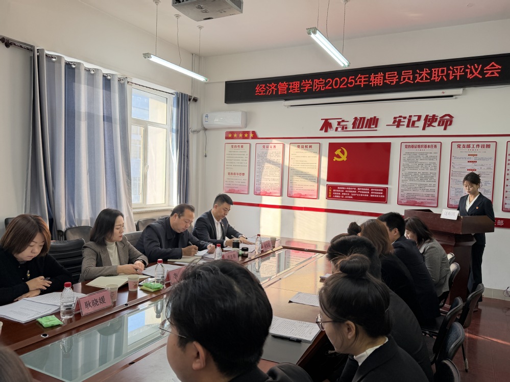 为加强辅导员队伍专业化、职业化建设,精准评价履职成效,12月25日,经济管理学院召开2025年辅导员述职评议会。党委学生工作部(学生处、武装部)部长李颖、学生心理发展指导中心教师张晔列席会议,学院领导班子、全体辅导员参加会议。会议由学院党委副书记张春磊主持。
