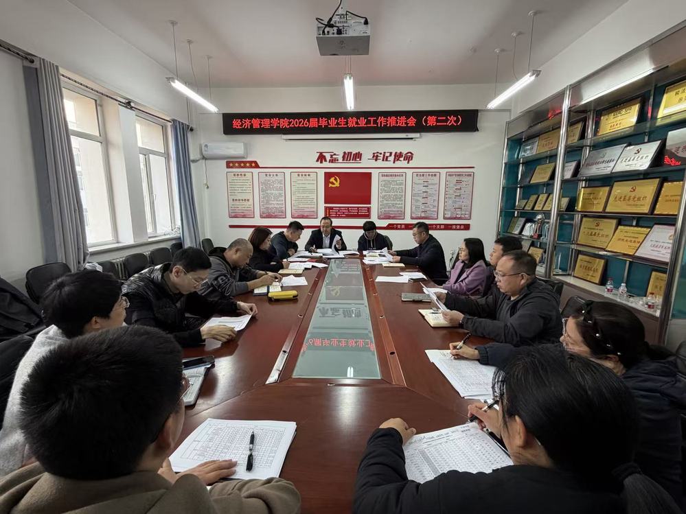 3月26日,经济管理学院在339会议室召开2026届毕业生就业工作第二次推进会,学院领导班子成员、系主任、就业辅导员参加会议,会议由学院党委书记李志有主持。