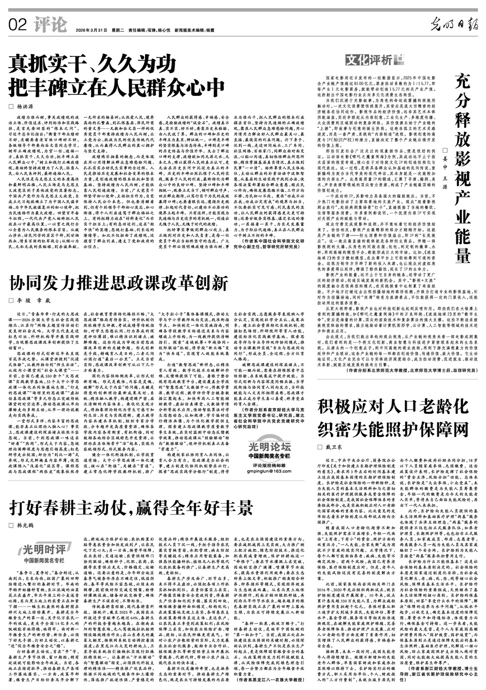“春种一粒粟,秋收万颗子。”打好春耕主动仗,是端牢中国饭碗的“第一粒扣子”。当前,我国正处在加快建设农业强国的关键时期,必须深刻认识到,春耕生产不仅是农业生产的起点,更是保障国家粮食安全的基石。从政策精准发力到科技赋能支撑,从风险保障兜底到绿色理念引领,每一分努力都在为全年粮食丰收积蓄力量。